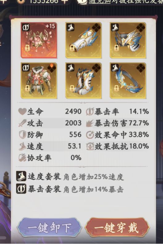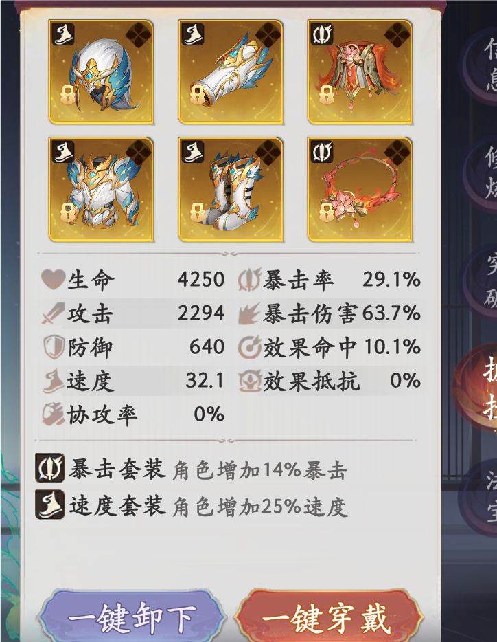 披挂方面,同样是速度暴击套。