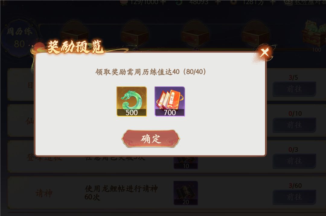 周活跃500仙玉