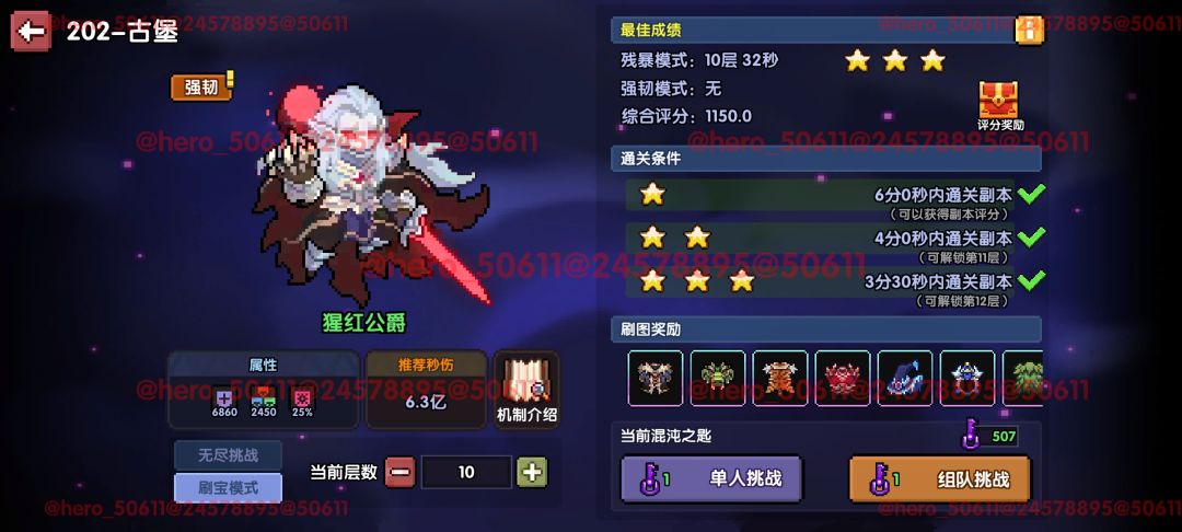 在刷装备时,我们只需要打这两张图就可以。难度选择10-刷宝模式(难度高了,给的奖励也一样,爆率也一致。)