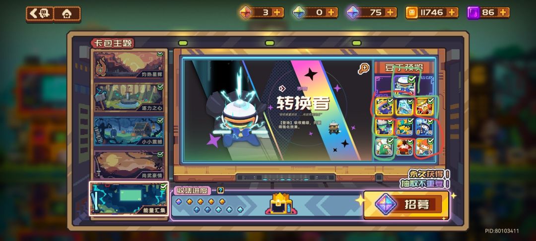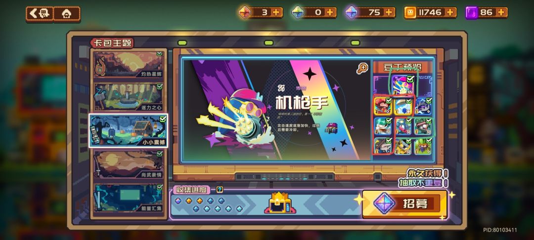 7.卡池抽取顺序:我个人推荐的卡池抽取顺序是这样的(截止至s5赛季):转换者→堂吉诃德→一刀斋→雷神将/炎星→海蛇/浪客→机枪手→古灵 这个排序不是说是抽到彩就到下一个了,还有就是为什么海蛇和浪客排在那么后面,是因为海蛇和浪客都很难和其他的大卡池组阵容,所以排在那么后面,而把唐吉排在那么前面是因为新手大部分都不会防唐吉,所以低端局可以打一下这边说一下每个卡池要抽出来什么豆丁才算合格