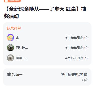 恭喜各位大佬获得奖励。请宝子们记得尽快前往WB关注【浮生为卿歌】官方号;联系官博:浮生为卿歌官博君私信发送【TapTap ID号截图】、【姓名】、【邮寄联系电话】、【收件地址】(这个很重要!!!),信息收集完毕后,小歌会在尽快安排给大家寄送奖品哈~【请中奖的宝贝私信后耐心等待哈~小歌会陆续发放奖品~~】请查收下方获奖公示图哟~~