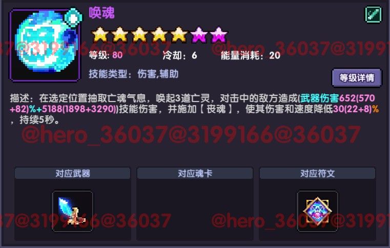 四星效果:使武器平a也能造成唤魂的技能伤害,同时赋予了唤魂击中怪物获取魂的效果,增强续航能力