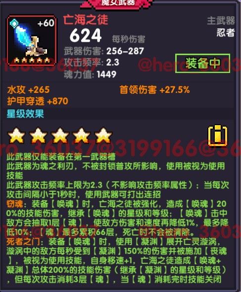 2.非常爆炸的连环机制。在小怪死亡后释放唤魂造成橙紫技能伤害并获取魂。新水的可观数值使忍者在实战中就是连环爆,魂一点都不带掉的。