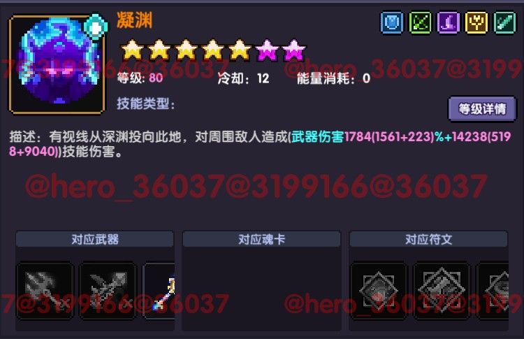 五星效果:使用凝渊开启漩涡即可施加丧魂效果,并且视为在一直使用技能,携带水种子可以让地上掉满水种子。同时使武器平a造成的伤害为橙紫技能总伤害的200%。虽然五星出现了每次攻击掉三层魂的效果,但是实战中的高额回魂使我们无需担心空魂的情况,如果在日常刷图中出现即将空魂的情况只需停止平a即可维持层数