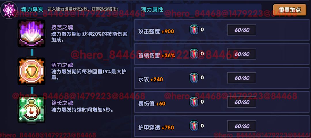 左边爆伤/水攻,右边首领伤害,下面符文能量