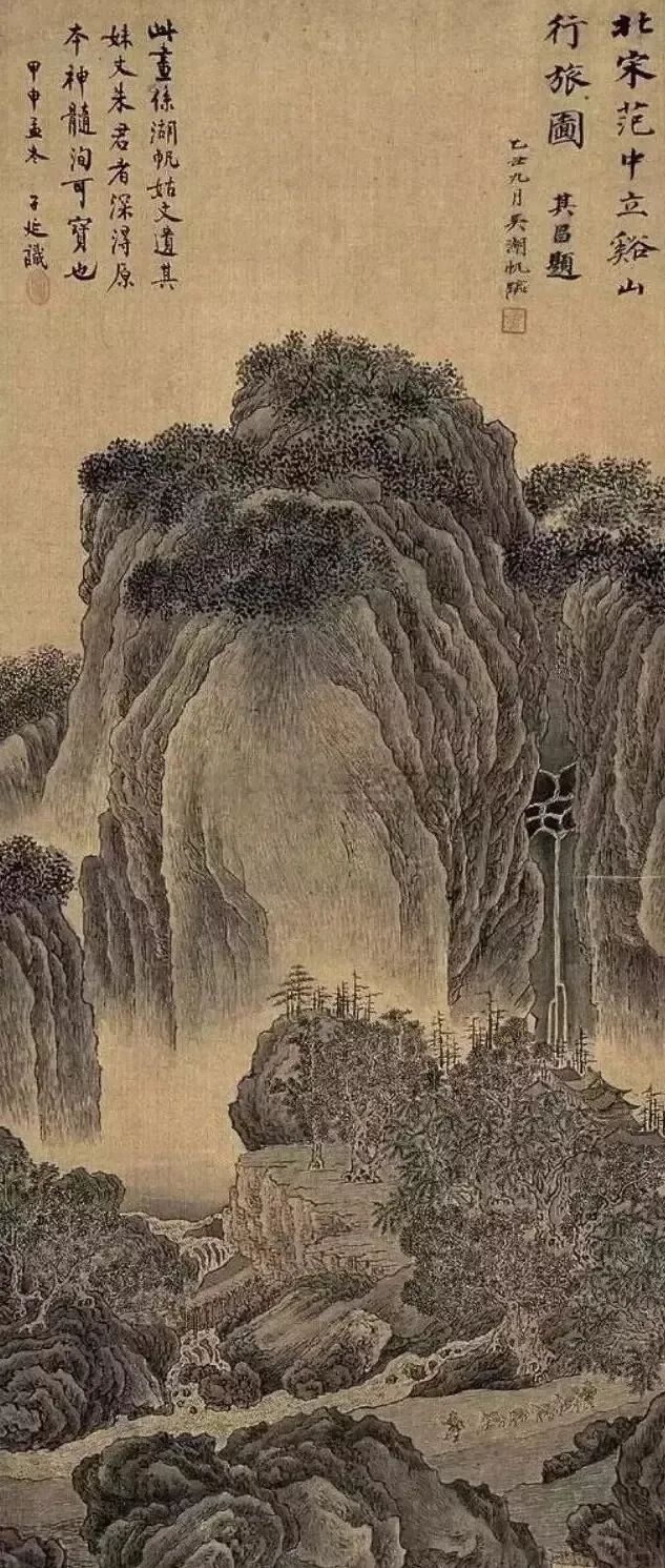 游戏中的溪山行旅图是来自北宋范宽创作的一幅绢本墨笔画。代表了北宋景色的宽厚雄大。