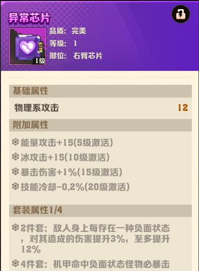 每个部分的芯片都分三种属性,分别是涅槃芯片、异常芯片和破势芯片。这3种芯片有什么区别呢?装备4个同名芯片会有什么样的套装效果?