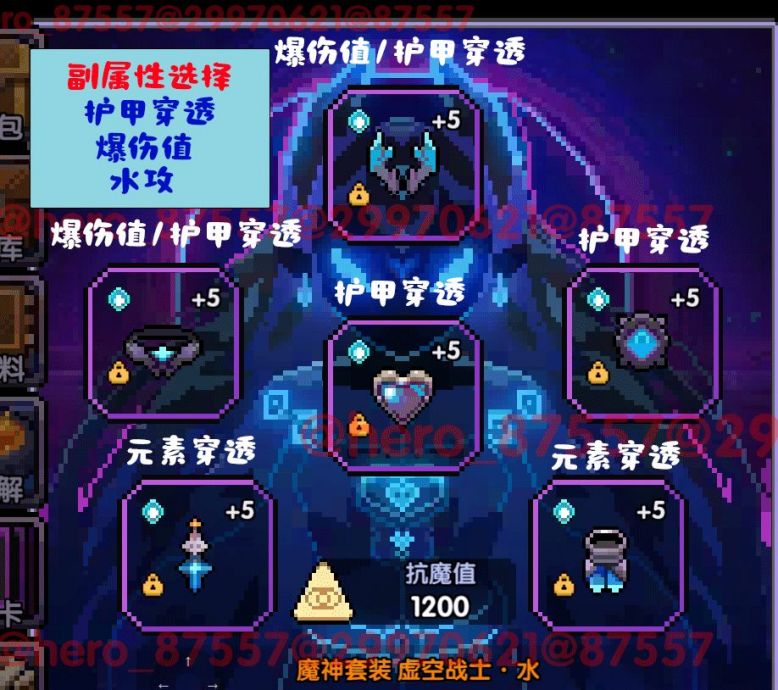 [披风]混沌暗金-精铁板甲:属性选择:暴击值、水攻、护甲