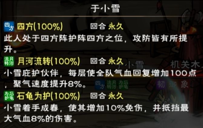 ②一个被动技能,只要小雪为队友造成增益效果,就能叠加一层“月河流转”,最高3层(开石龟为护也可以加一层)