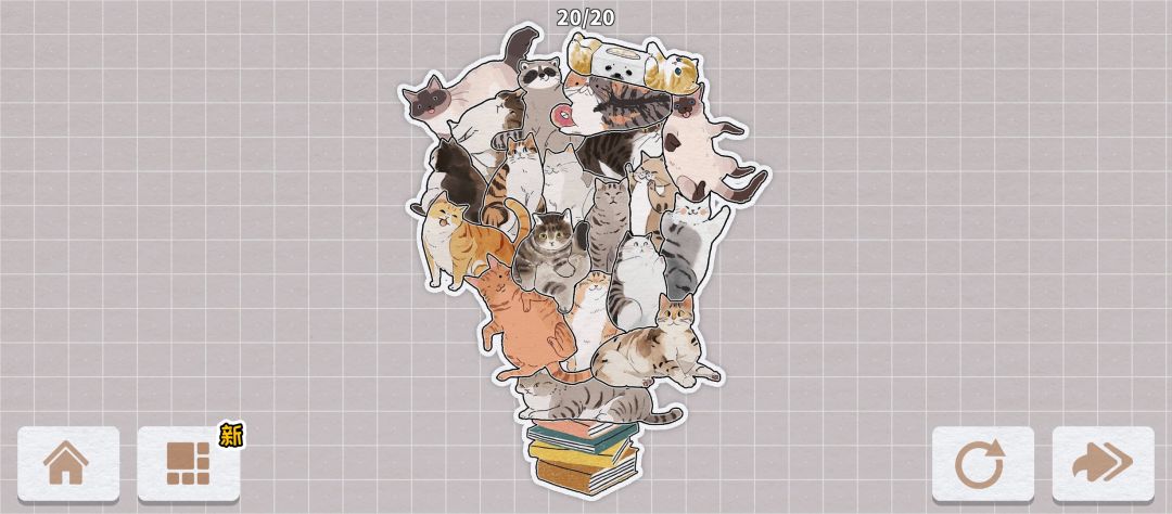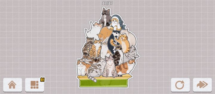 小猫是不会倒着的,所以虽说需要旋转,但并没有增添多少难度,因为猫猫肯定会是以正常形态出现在拼盘上。