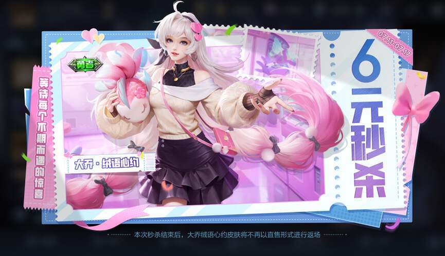 七月11号王者荣耀迎来了一次更新,这次更新的同时,也上线了一款新皮肤,也就是大乔的勇者皮肤绒语心约,这是一款六元秒杀皮肤,60点券就可以入手。这款皮肤在上线之后的销量也非常高,根据网友统计的数据,这款皮肤上线之后的第一天,销量就突破了百万。