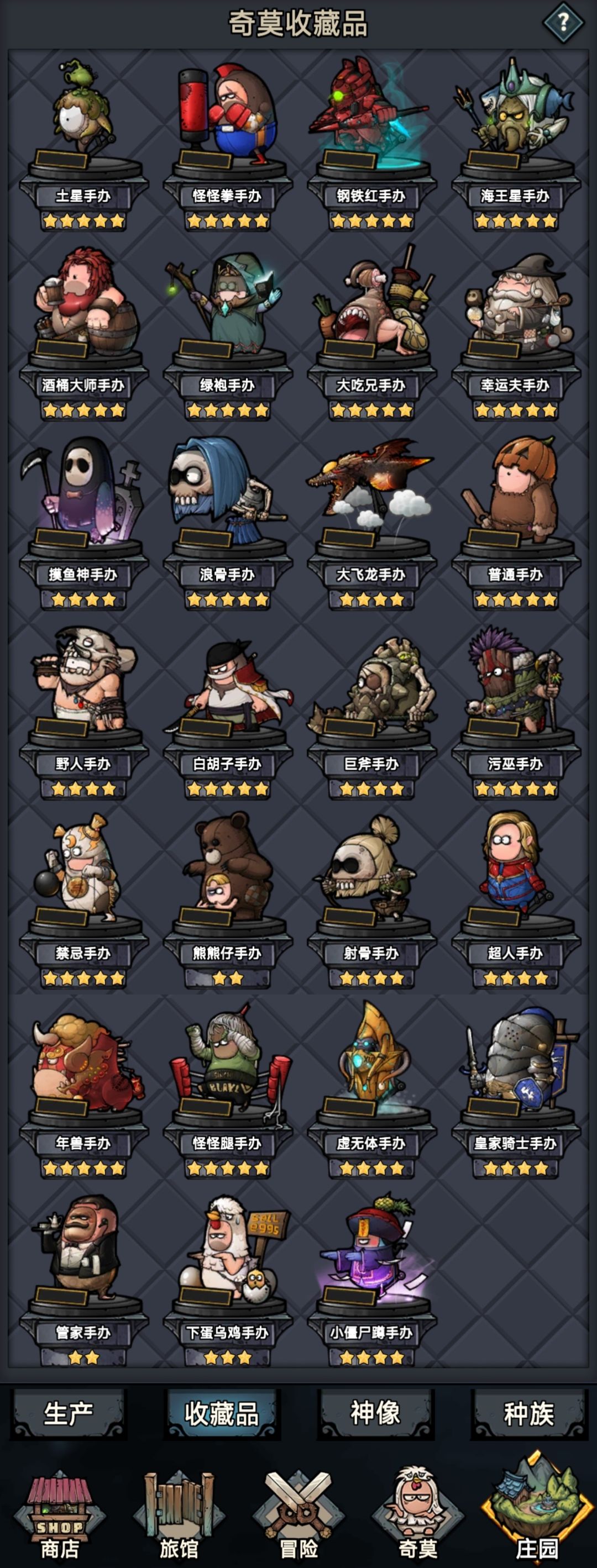 收藏品升级:冒险者消耗水晶即可获得经验,收藏品升级后将得到更强的加成;