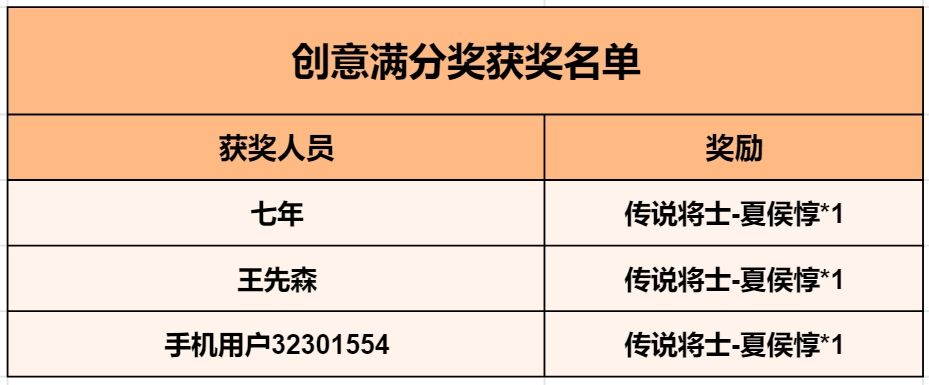 注:创意满分奖仅为对主公设计用心,投稿高质量的奖励,实际夏侯惇技能以上线为准!