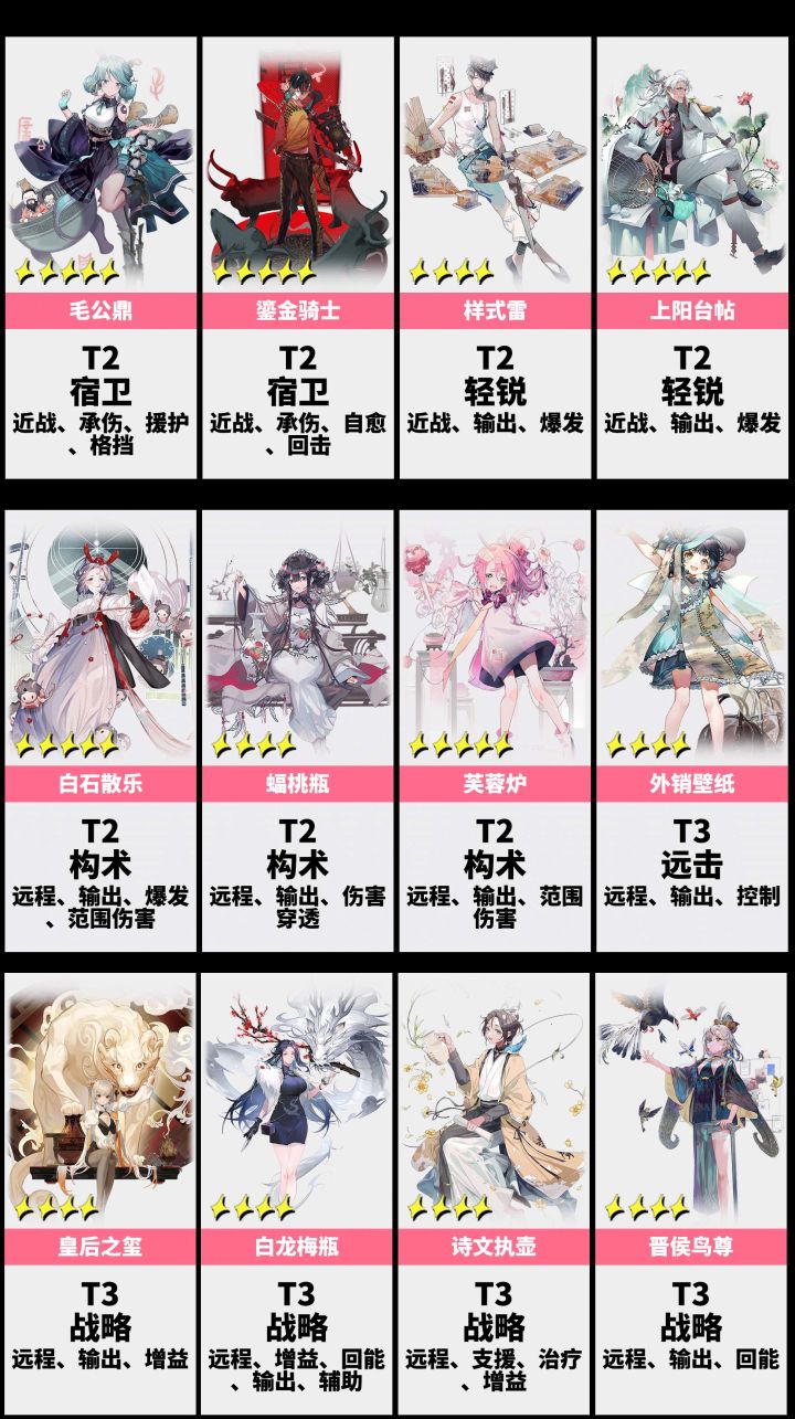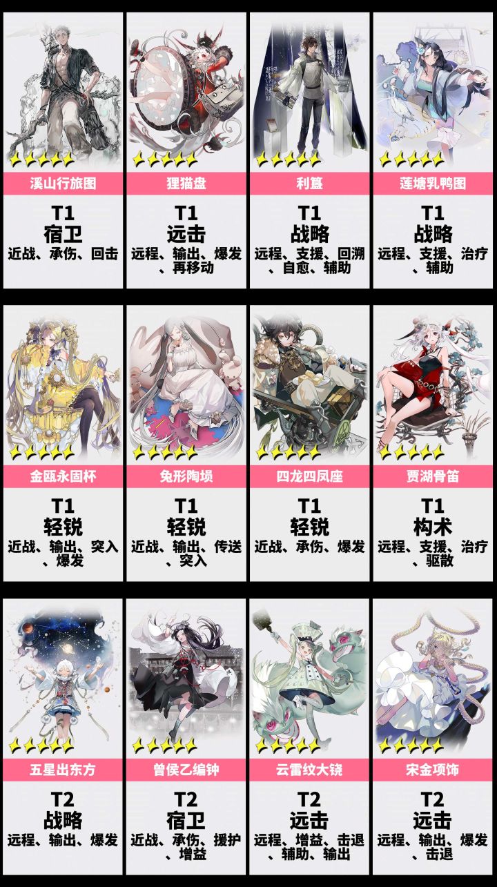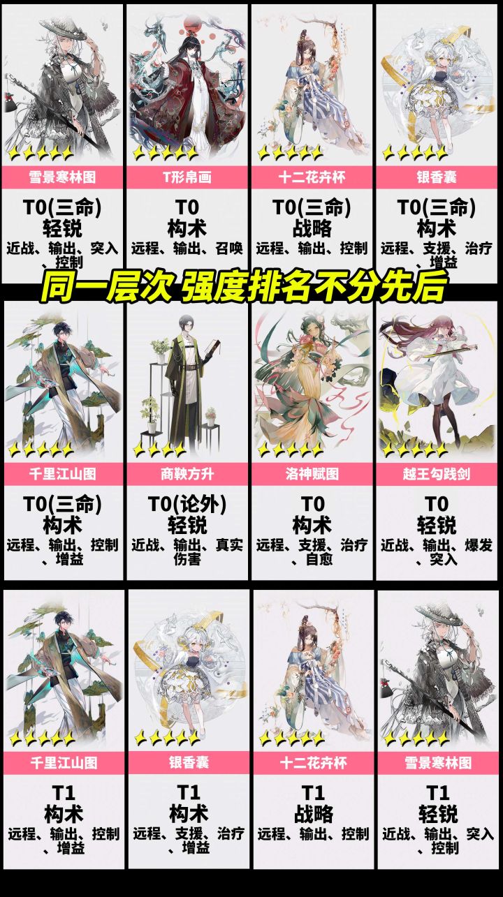 1.3版游戏环境有了很大的变化,洛神赋掉下神坛,排行榜对很多角色排名做了变更。未入榜的角色统一放进T4里。【点赞支持我一下吧~