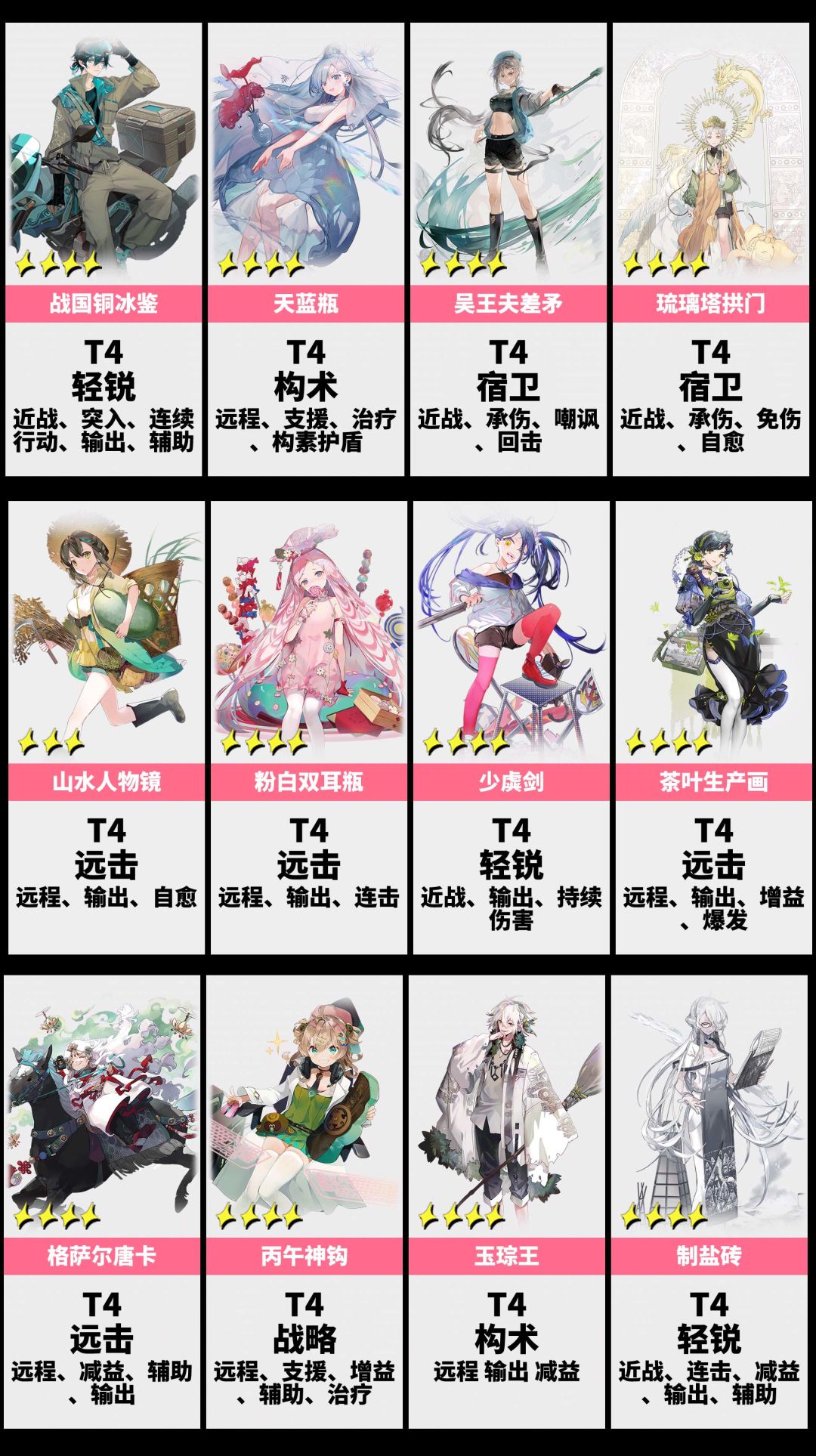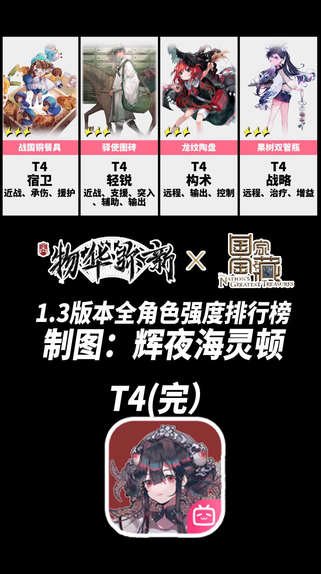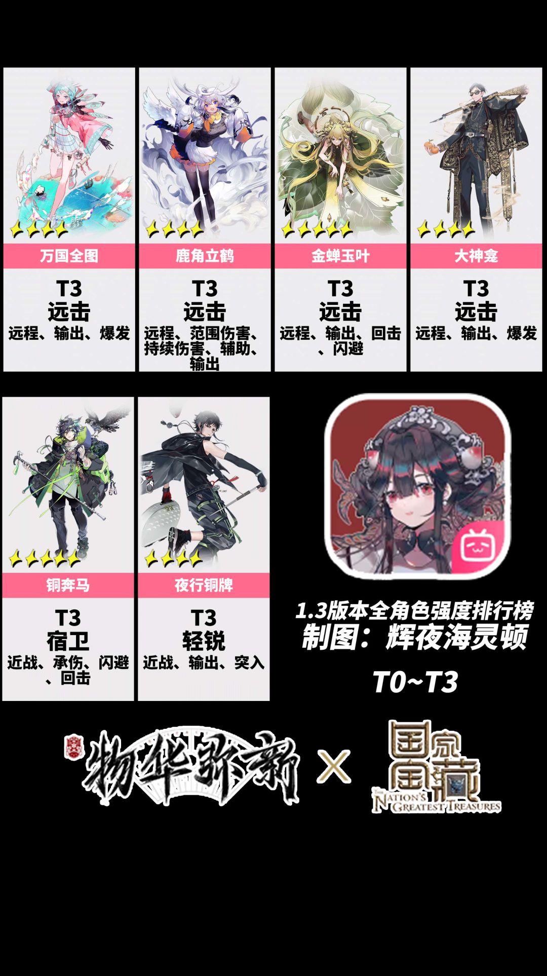 1.3版游戏环境有了很大的变化,洛神赋掉下神坛,排行榜对很多角色排名做了变更。未入榜的角色统一放进T4里。【点赞支持我一下吧~