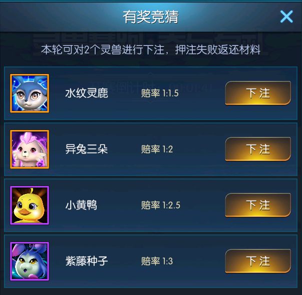 首先来说这个赛跑找不到什么规律可言,四只灵兽的赔率不同,甚至可以说差距非常大。