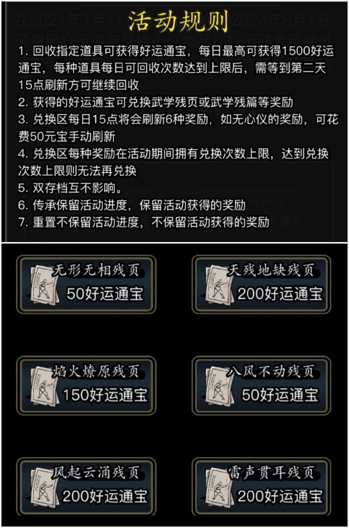 基本规则如上,兑换目前武学技能残页分为:初级,中级,高级和顶级残页