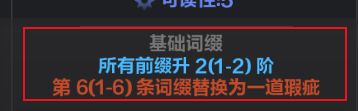 噩梦则有:第(1-6)词缀降(1-3)阶、第(1-6)词缀相邻词缀降(1-3)阶、所有前缀降1阶、所有后缀降1阶、第(1-6)词缀替换为一道瑕疵。