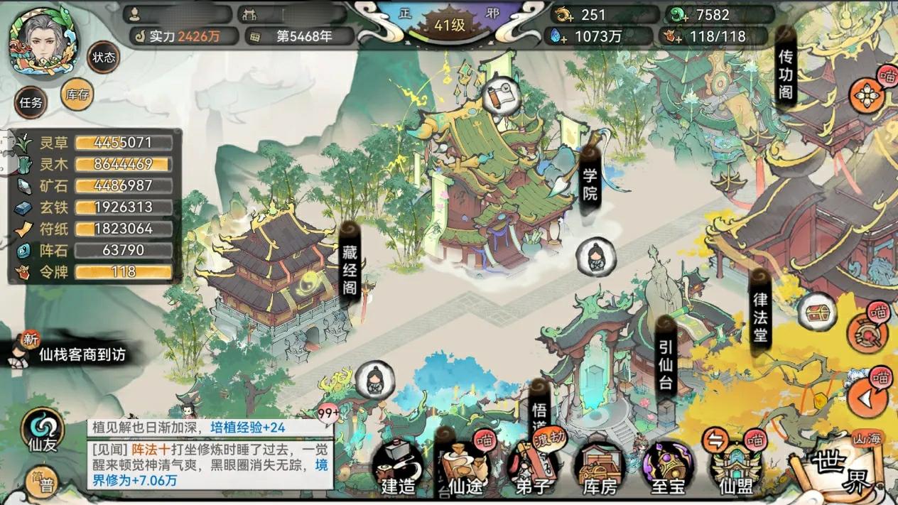 弟子服用丹药必须设置为掌门,节约15%资源。