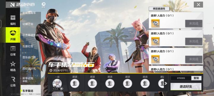 4个福利码 共计200钻+600热弯币+改装材料