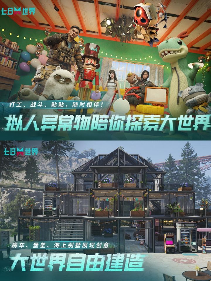 3️⃣还可以建造功能齐全、外形华丽的豪华别墅或者末日乐园,一起派对狂欢。厌倦了一成不变的建筑风景?快为房屋加上轮子,来一场说走就走的房车之旅吧❗
