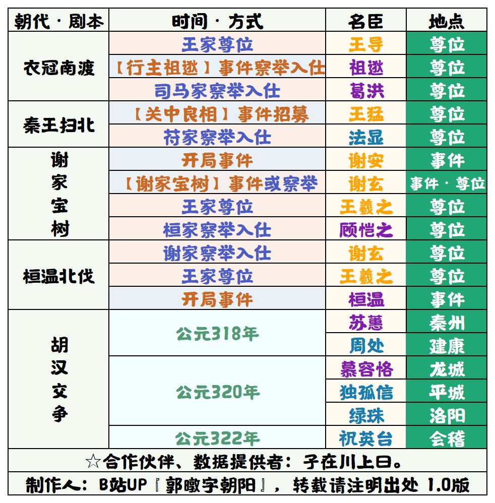 【无悔华夏】魏晋南北朝名臣登场时间、地点表