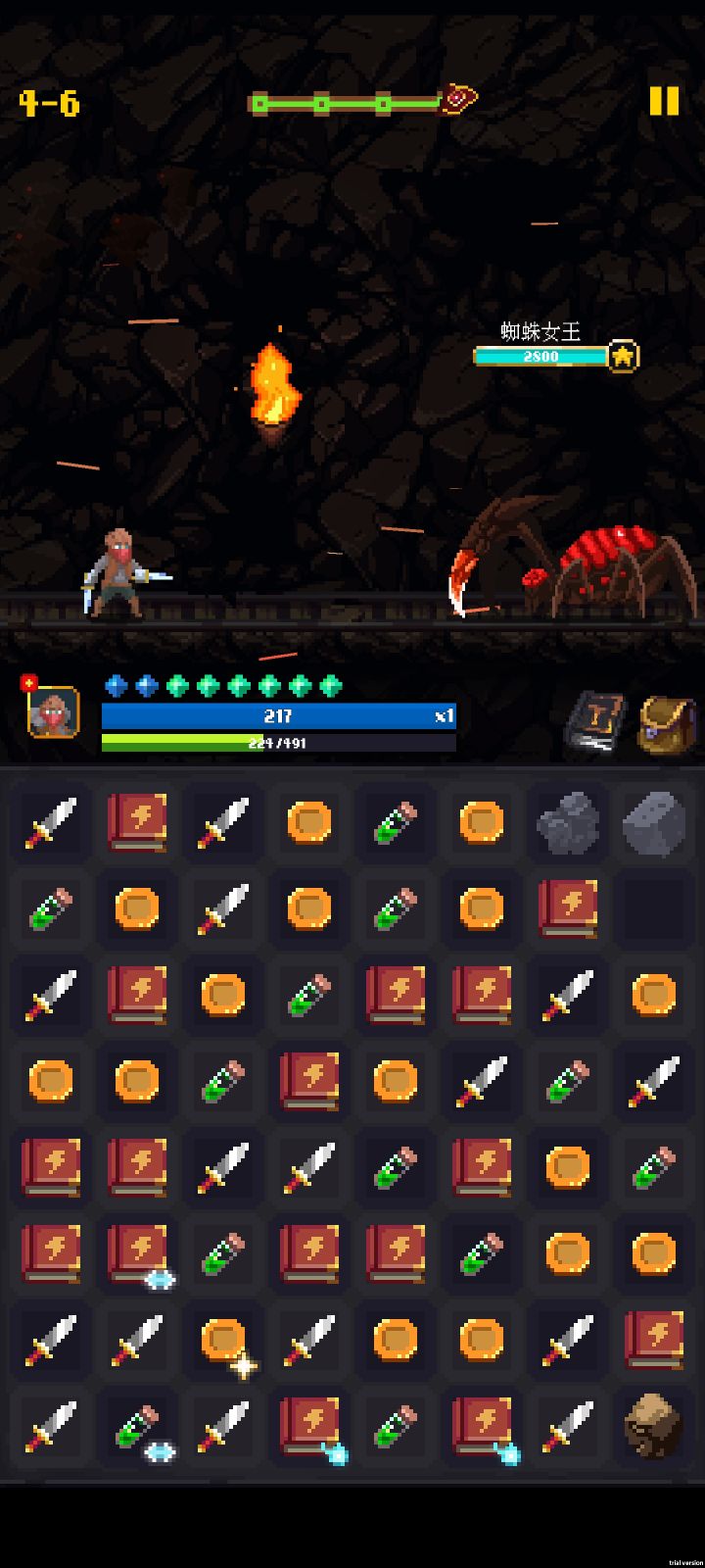 萌新玩的刺客,刚玩打完蜘蛛,前面都是熟悉操作的关卡,没有什么难度,蜘蛛死了俩次,前面几波先叠药瓶,后面无脑6连药瓶等连锁就过了,装备一大关回家更新一波,主拉强化宝石,词条好的装备可以接着用,游戏挺有爽感的,连击叠伤有感觉,BOSS强度应该也会越来越大,可以入手玩一下
