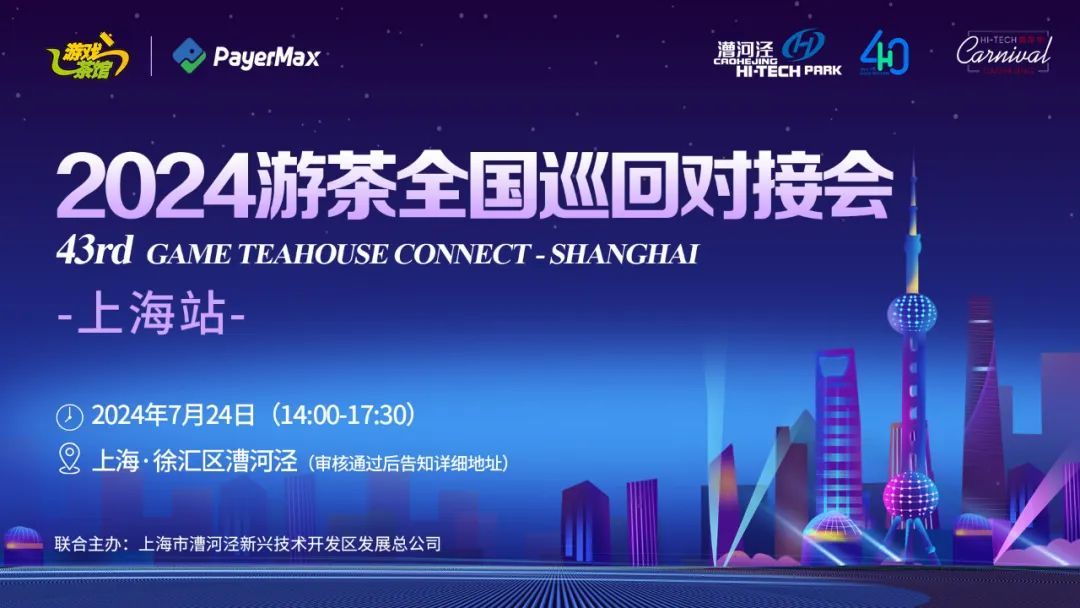 由游戏茶馆主办,上海市漕河泾新兴技术开发区发展总公司联合主办,以“突破创新、瞄准需求”为主题的2024游茶对接会(全国巡回)第三站-上海站,将于7月24日在上海市·徐汇区漕河泾举行。