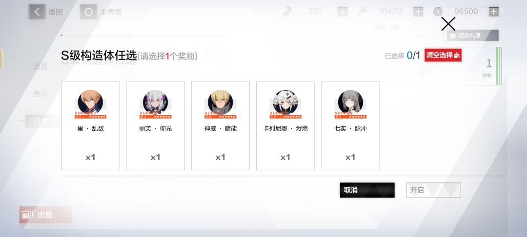 奖励基准券、材料、意识以及一个自选S角色与自选6星武器。(选人推荐前面已经讲解了,这里不再赘述)