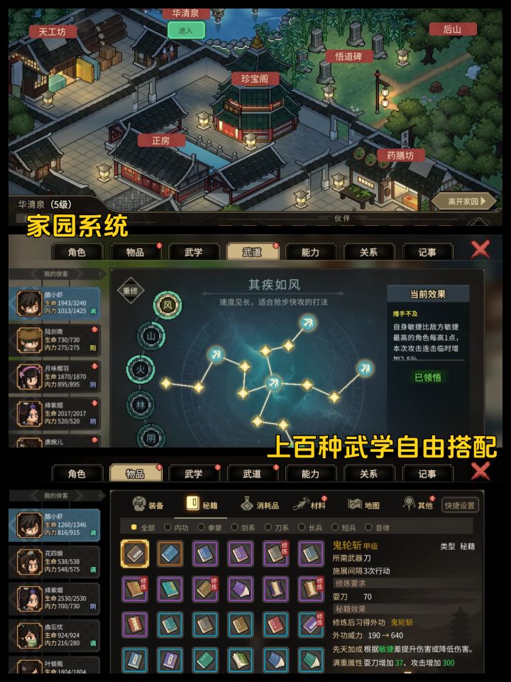✨百余种江湖武学,可专精亦可集百家所长。