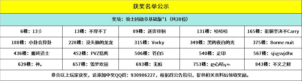 注意:S3赛季骑士团勋章将在7月18日早上11点开奖!