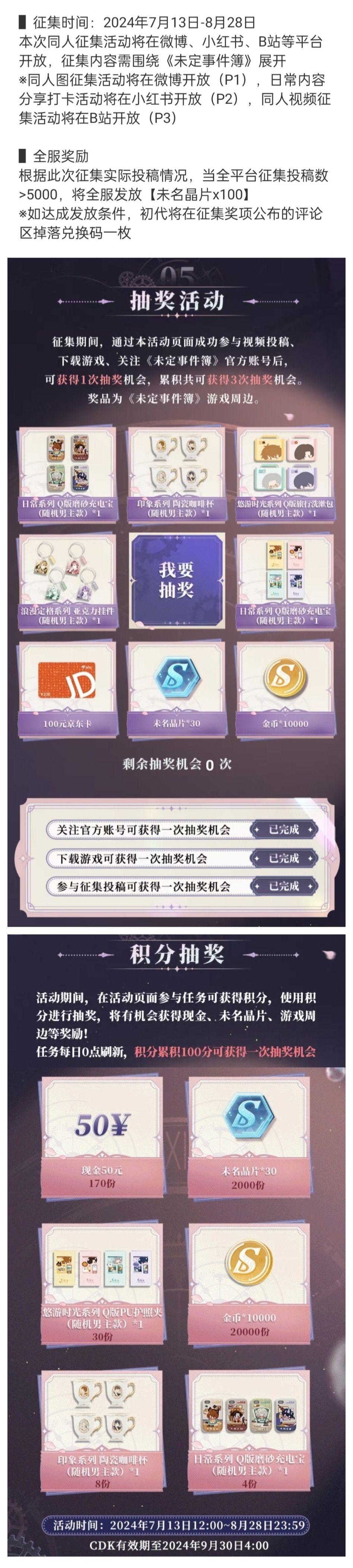 《未定事件簿》微博超话 30晶片(连续5day)+1*限时泪(连续7day)