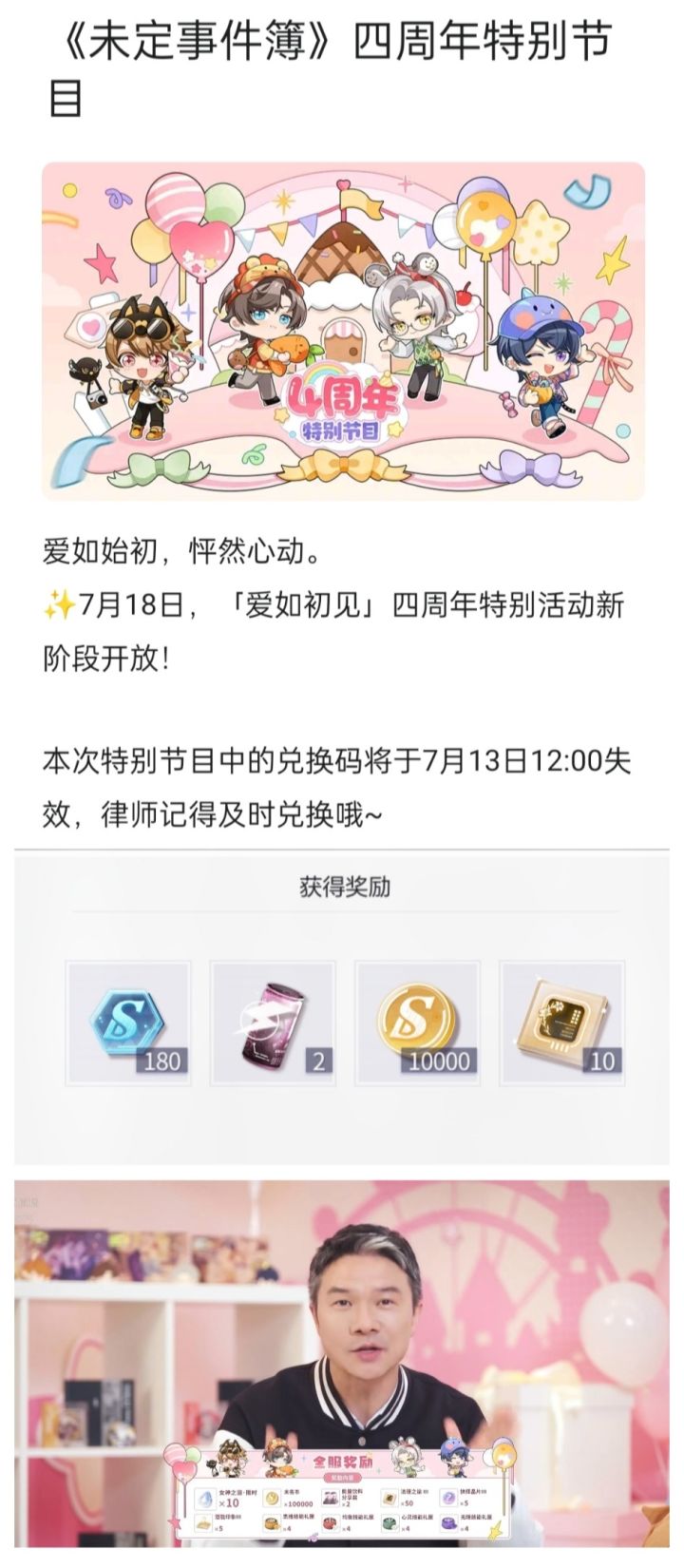 未定四周年直播兑换码 180晶片(一共3个兑换码,兑换码在评论区下面,可以直接复制粘贴使用)