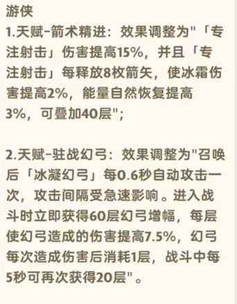 今天一觉睡醒,看到这个更新,直接原地起立了啊,游侠一波大加强,先放上完整的天赋改动
