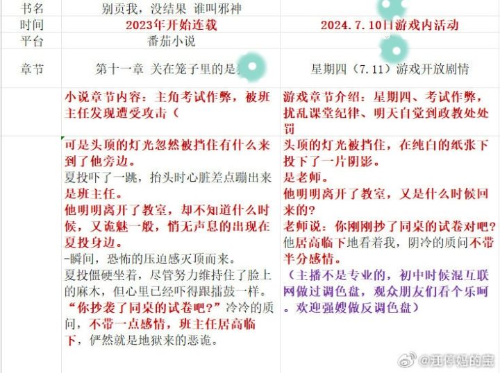 今天凌晨,网友在《世界之外》超话发帖称,新活动剧情疑似抄袭,并整理了剧情调色盘进行对比![[表情_斜眼笑]](https://img.tapimg.com/market/images/d1b1dcc88719f6c9a639728cde152c4b.png)