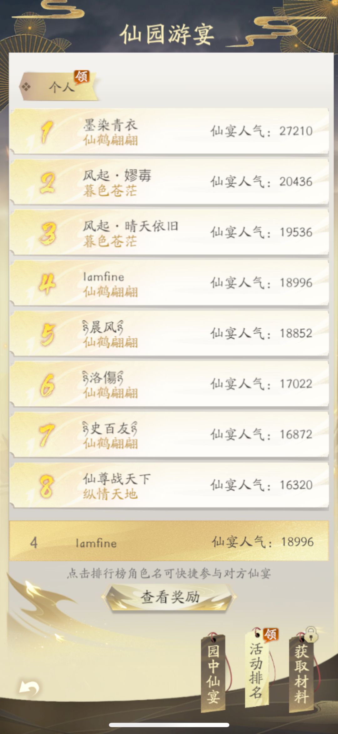六、玩的另外一个服同日仙宴(忘川套装)活动结榜: