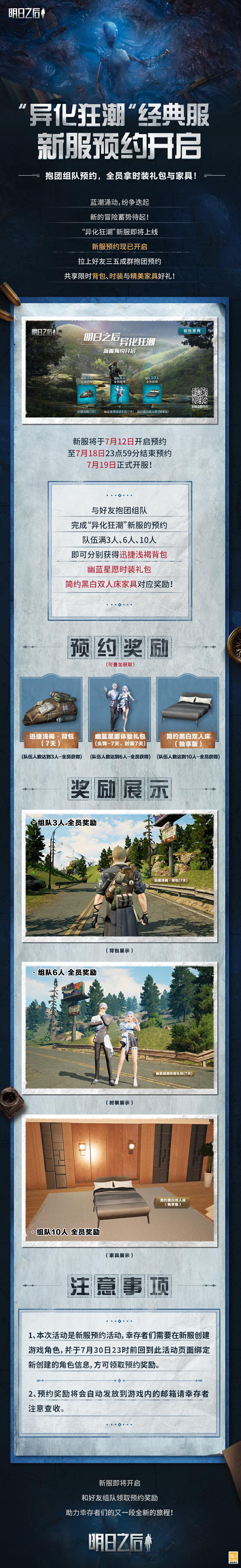 经典服新服【异化狂潮】现已开启预约,预约时间持续至7月18日,7月19日正式开服!明明在此为大家送上预约好礼!