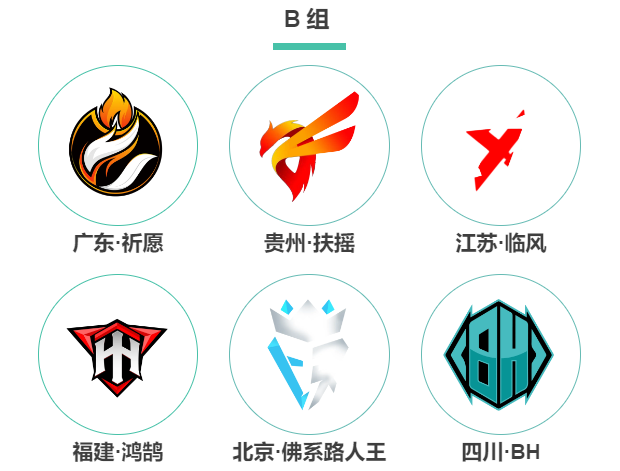 晋级月赛的12支战队,通过抽签的方式,分为A、B两组,每组6支队伍。
