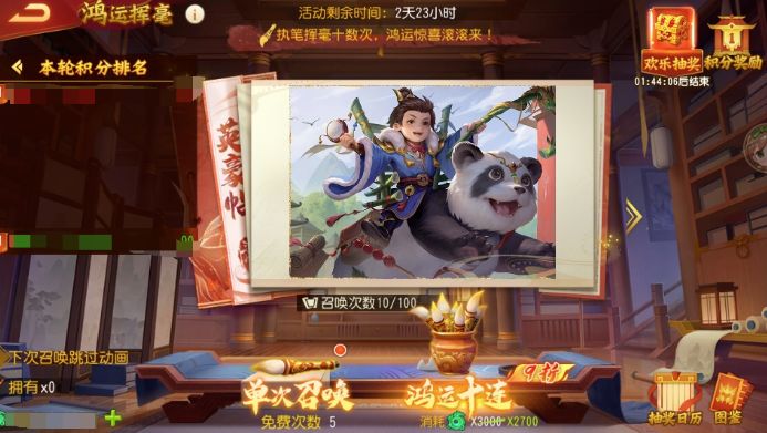 2、在抽奖开启期间,只要主公进行过1次挥毫,就能自动获得本轮抽奖的参与资格,挥毫次数越多,中奖概率越大;