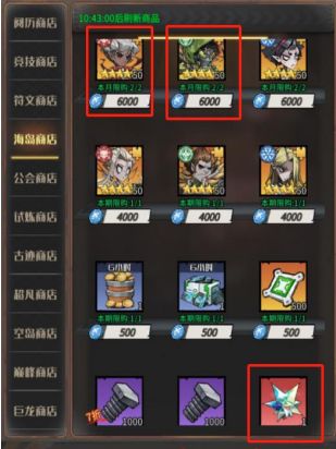 海岛商店:道格拉和加文 2 选 1,中期会加入神格石(右下角),再优先兑换神格石