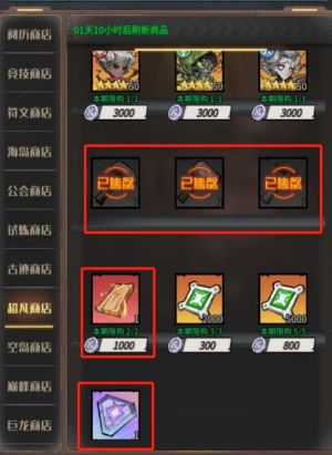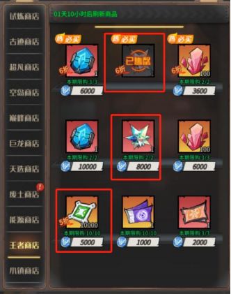 小镇商店:优先购买兴运之灵,其次是幻石、阵营招募卷