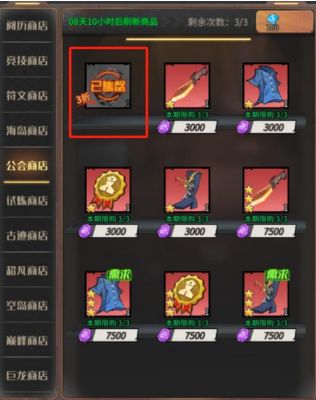 公会商店:主要是购买装备突破石,通过刷新才会出来