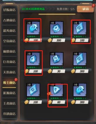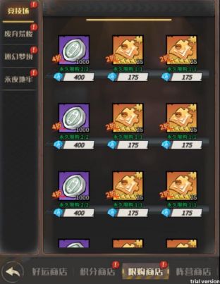 限购商店里面的需要花费钻石的东西一个也不要买,性价比非常差,不氪金钻石比较紧张,后面有需要大量钻石去购买的必需品!(氪金大佬随意)