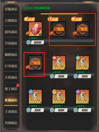 能源商店:主要是购买水晶晶体、资源自选箱