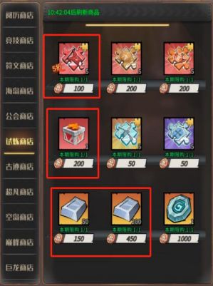 试炼商店:铁、碎片皆可购买