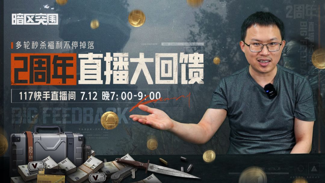 策划117直播来袭!暗区突围2周年直播秒杀活动,包括近战武器、安全箱等道具!还有暗区实物周边首次亮相包你满意!