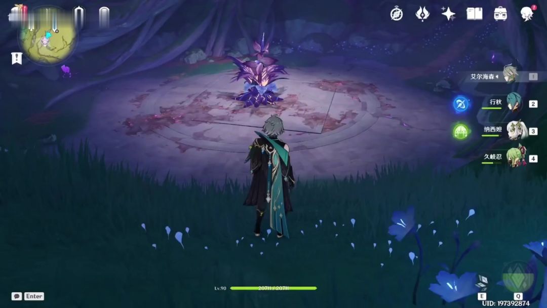 同时由于妮绽放队伍转火不掉任何buff,我们面对所有怪物都可以打这套无脑流程,而不用考虑技能顺序等等,面对多波次时打完一波怪,利用海森e的位移跑过去接着打第二波怪即可。