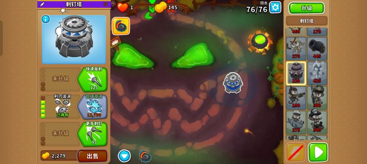040刺钉塔,在气球刚到攻击范围(如图2位置)时放技能。