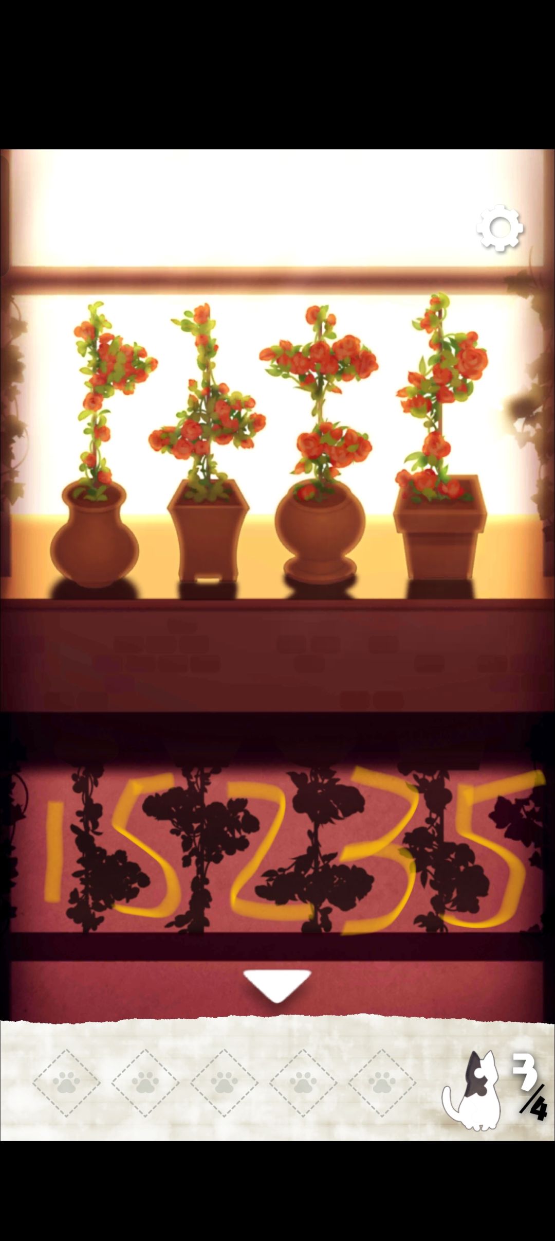 2.绿植摆放完毕后,根据地上的影子,可以得出密码为15235