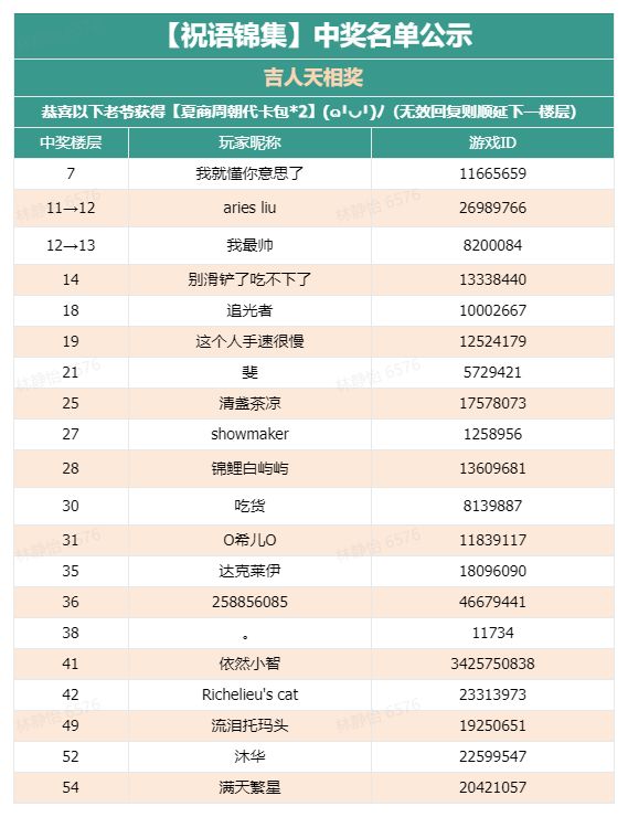 感谢大家的热情参与,中奖名单新鲜出炉啦!